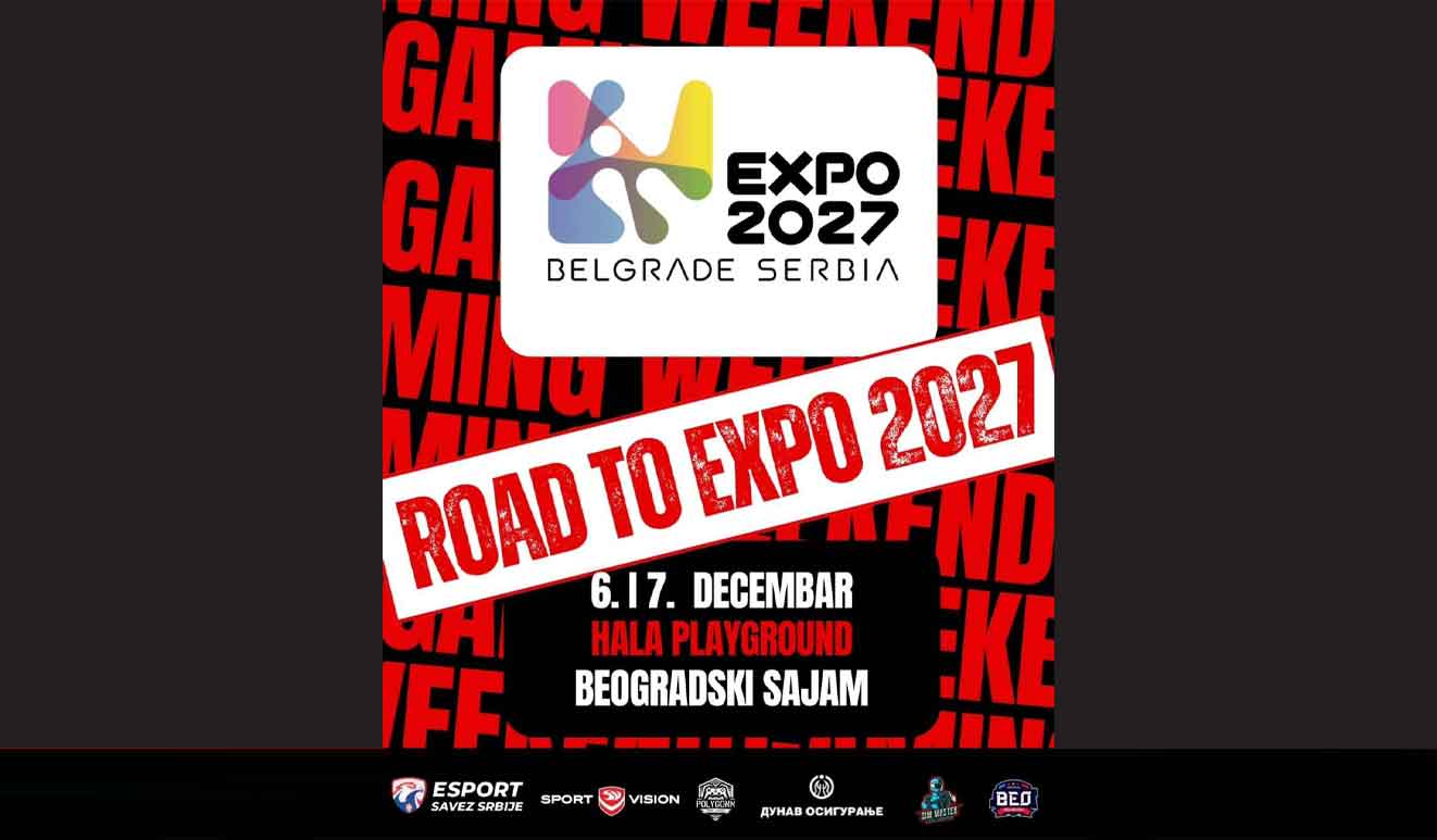 Dana 6. i 7. decembra, sa početkom od 12 časova, održače se Gaming Weekend u Playground hali na beogradskom sajmu. Ova manifestacija, koja će ugostiti sve ljubitelje esporta i gejminga, biće prva u nizu događaja pod nazivom “Road to Expo 2027”, koju će Nacionalni Savez za Esport Republike Srbije u saradnji sa kompanijom Expo organizovati sa ciljem promovisanja industrija esporta i gejminga kod mladih.